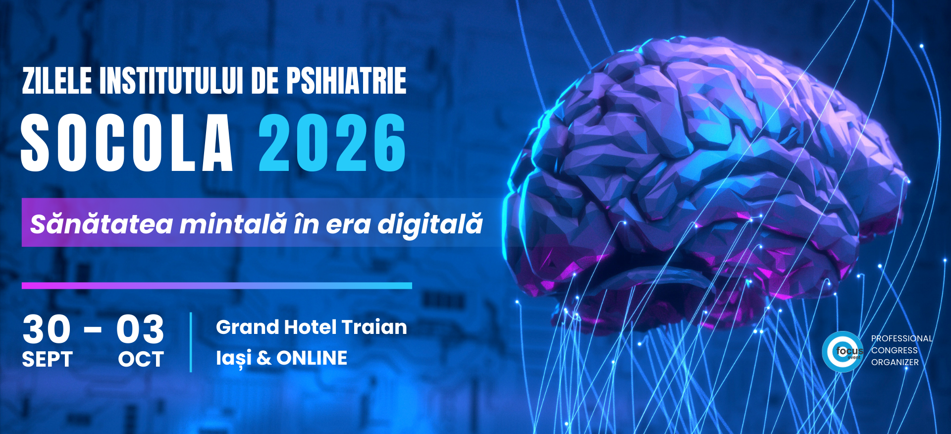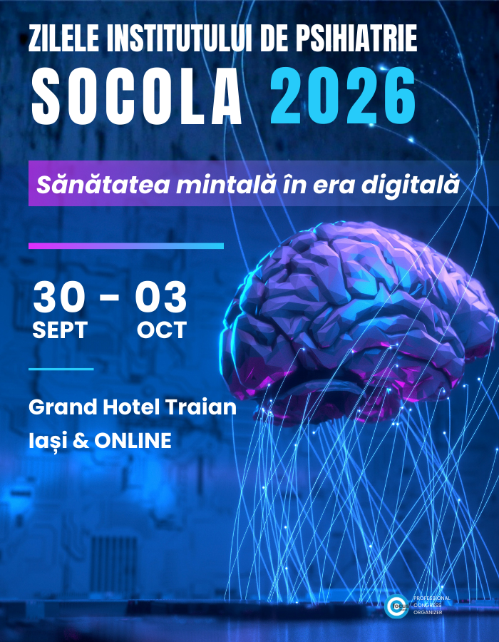 Este o onoare și o mare bucurie să vă invităm la Conferința Națională Zilele Institutului de Psihiatrie SOCOLA din Iași care, anul acesta, se va desfășura sub titulatura stiințifică Sănătatea mintală în era digitală.